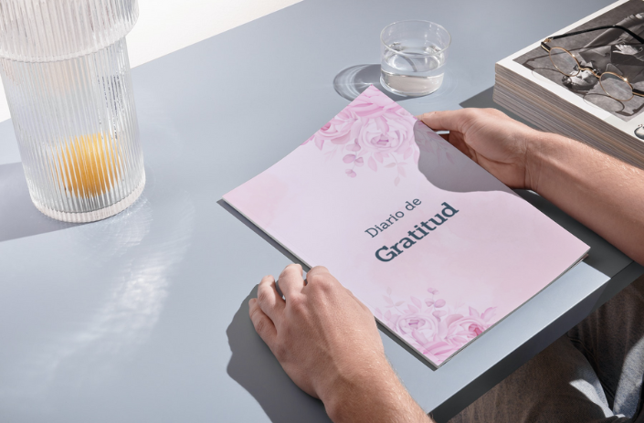 La ansiedad se alimenta de pensamientos negativos y preocupaciones sobre el futuro. Un diario de gratitud, te hará reflexionar y celebrar tus logros (por mínimos que puedan parecer)