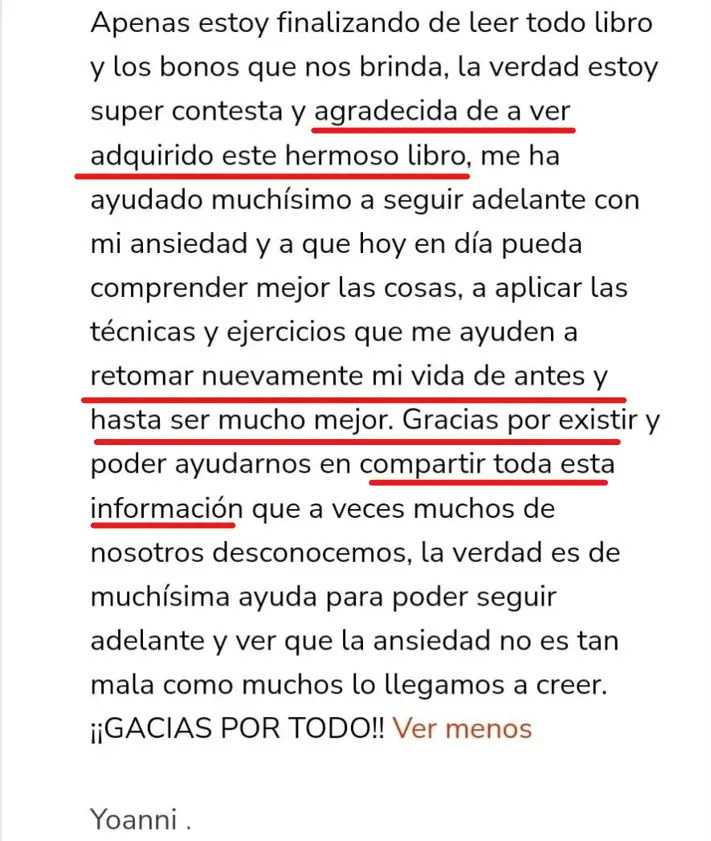 «Esta guía NO ES OTRO MÉTODO MÁS de autoayuda genérico. Está diseñada con técnicas avaladas por la ciencia para ofrecerte cambios reales y medibles, como: